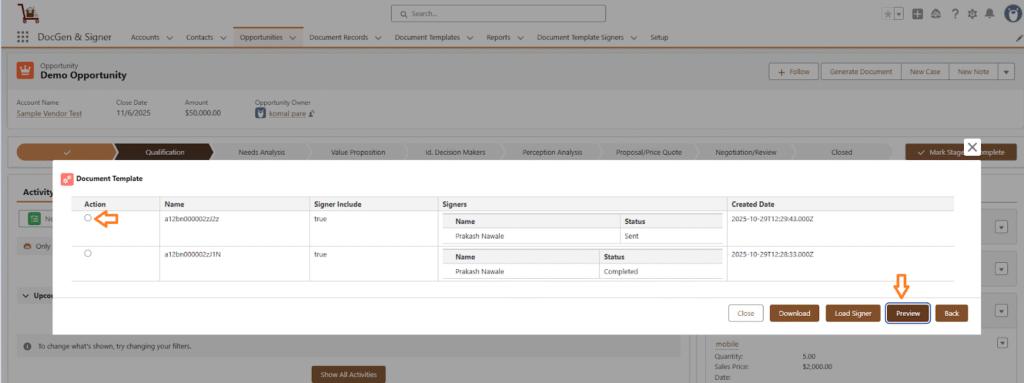 Go to the Target Object selected while creating a document and open the desired object record.