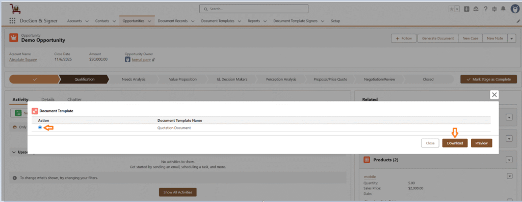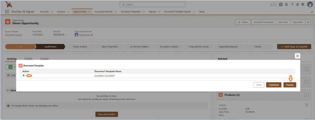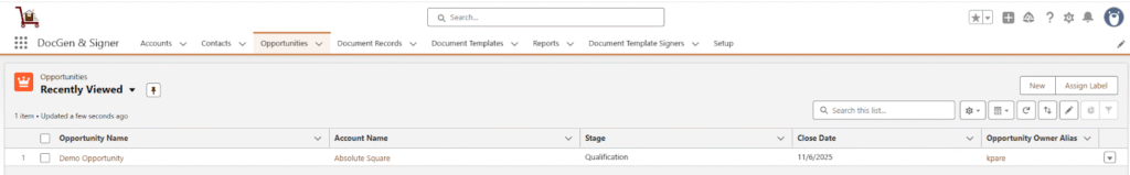 - You will see the document template you previously created.