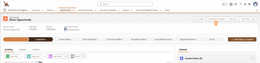 Click on Generate Document.