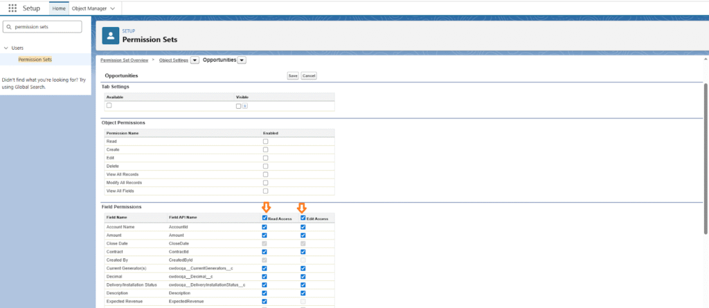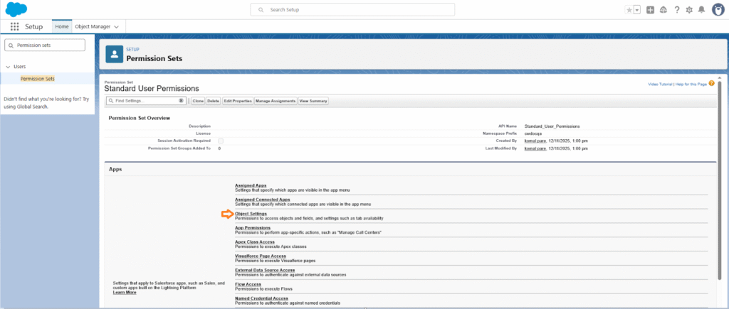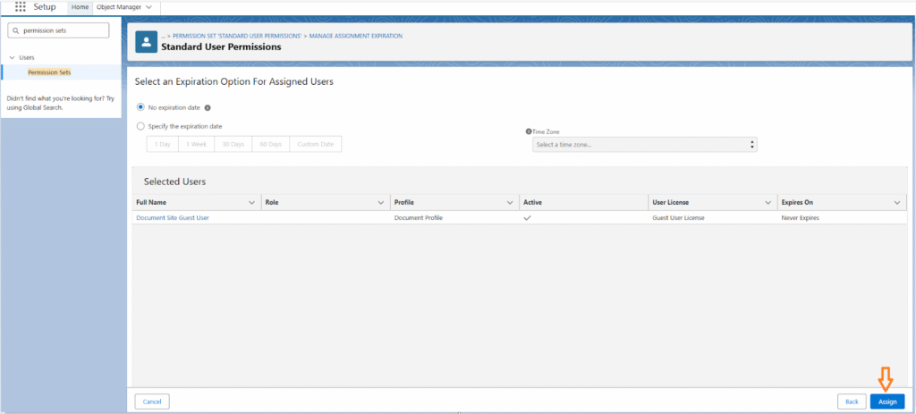 In this step, you will create a new Permission Set in Salesforce to define what level of access a user — in this case, the Guest User — should have for specific objects. These are the target objects that were selected during document creation.