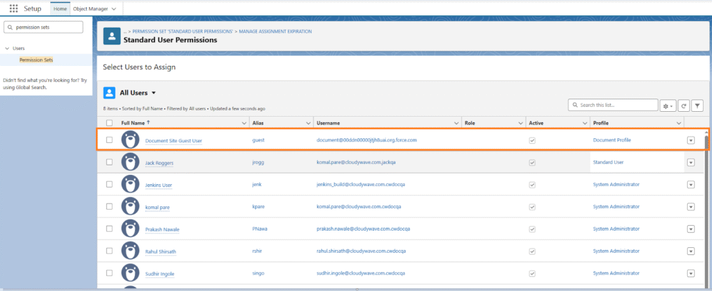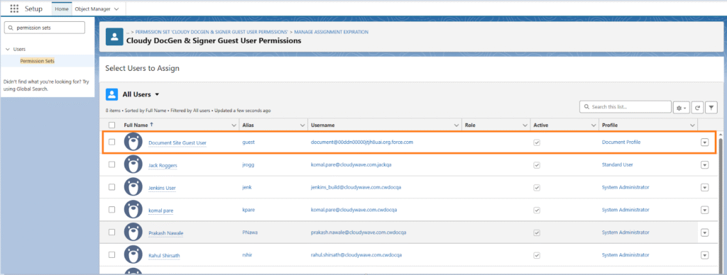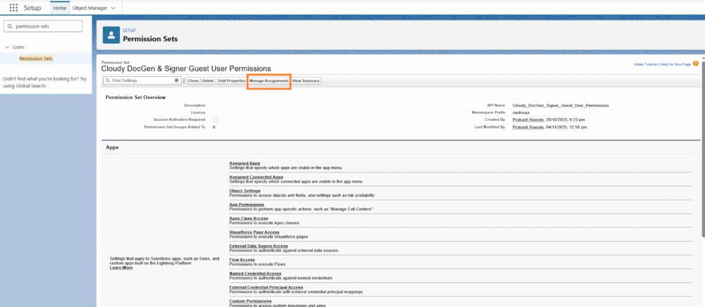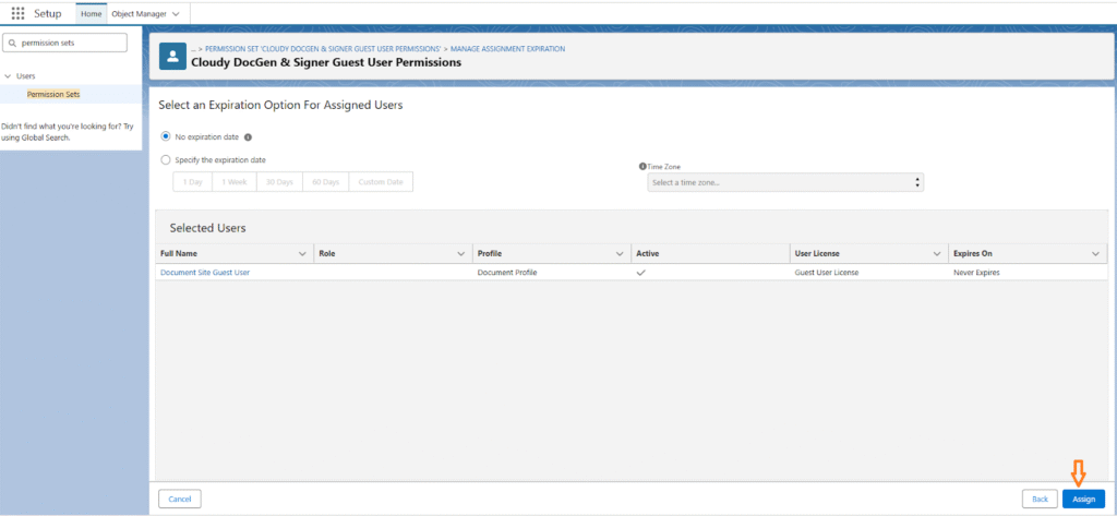 Step 2: Assign the Guest User Permission Set (Cloudy DocGen & Signer)