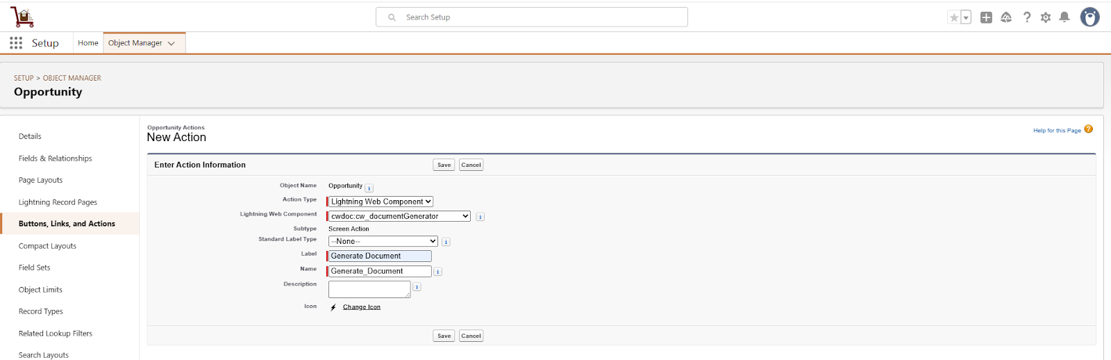 If the Generate Document button is not appearing on your target object page, follow this configuration process: