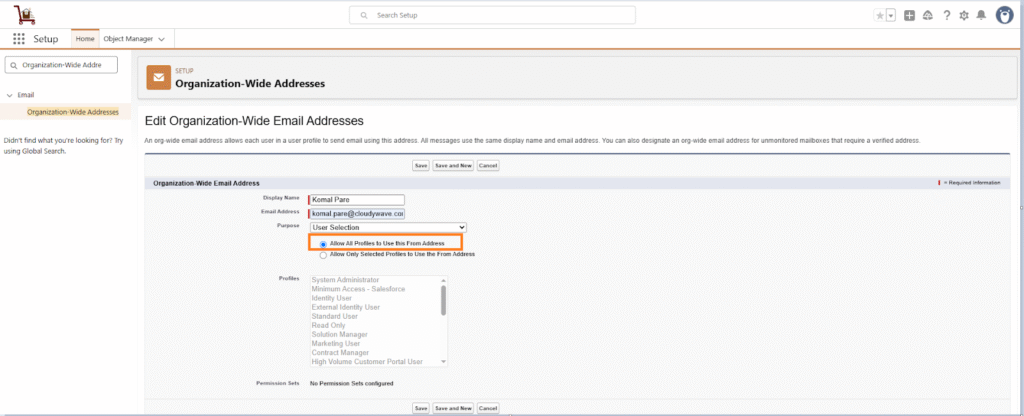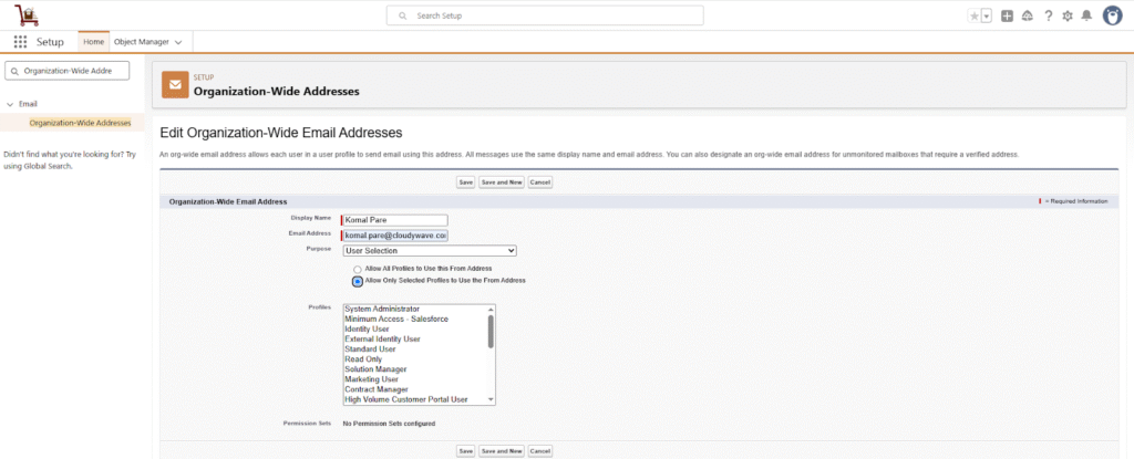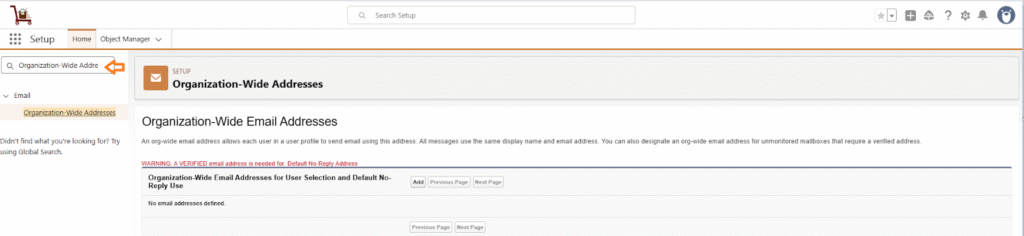 - In the Quick Find box, search for Organization-Wide Email Addresses.