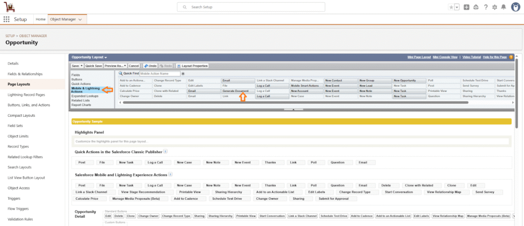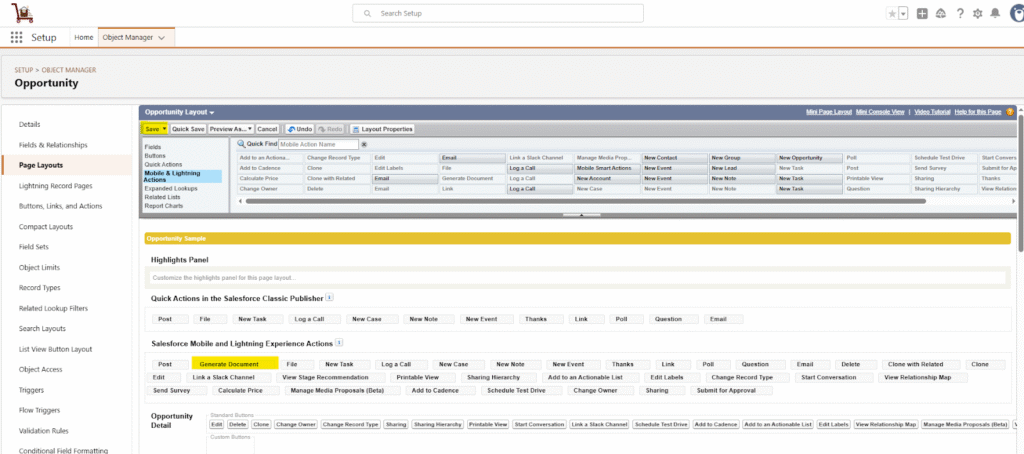 5. In the layout editor, go to Mobile & Lightning Actions.