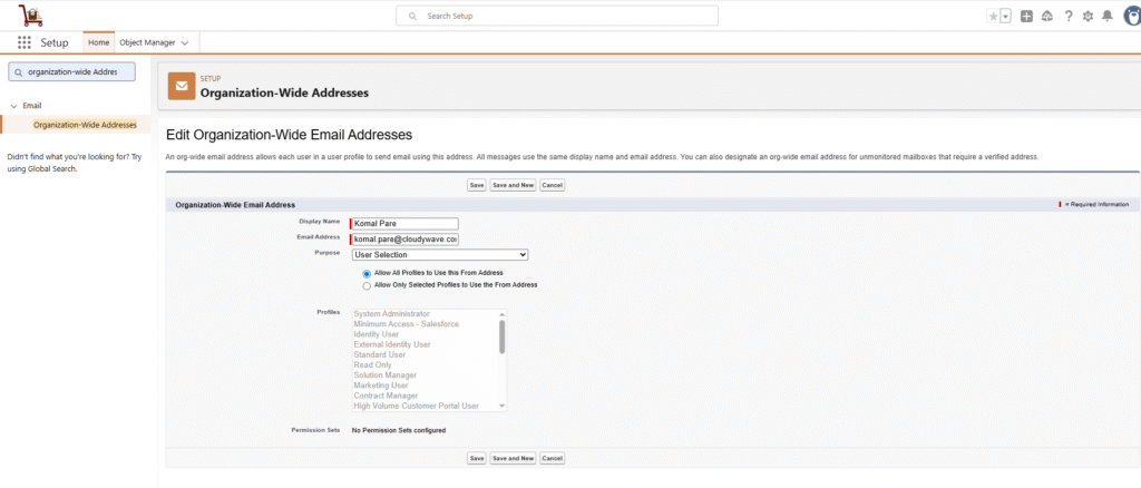 ➢ In the Quick Find box, search for Organization-Wide Email Addresses.