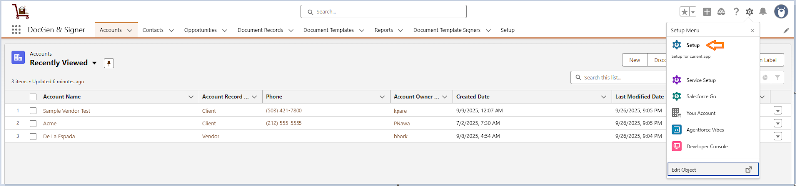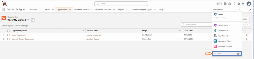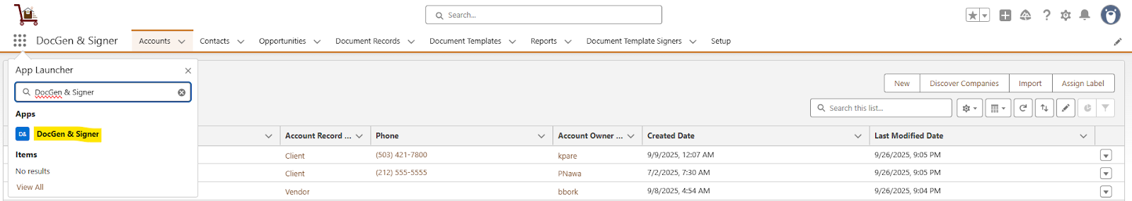 ➢ Refresh the org and search for “DocGen and Signer” in the App Launcher search box. If you experience any refresh issues or if the document-related tabs do not appear, log out and log back in.