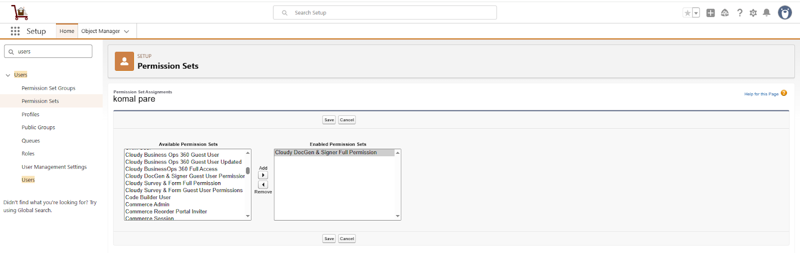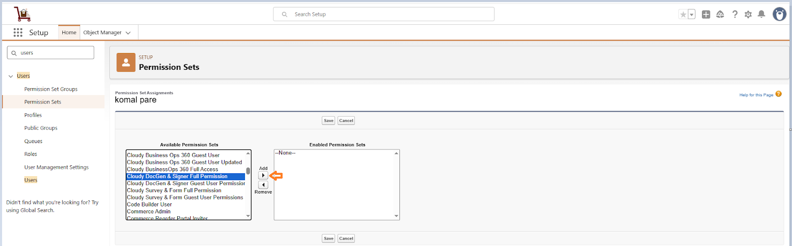 ➢ Click on Cloudy DocGen & Signer Full Permissions and click on add Arrow.