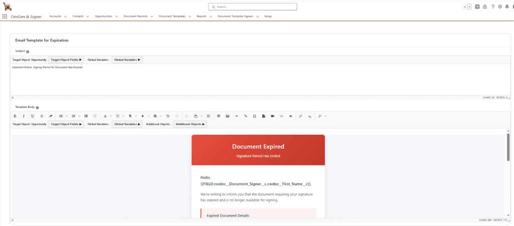Email Template for Expiration: