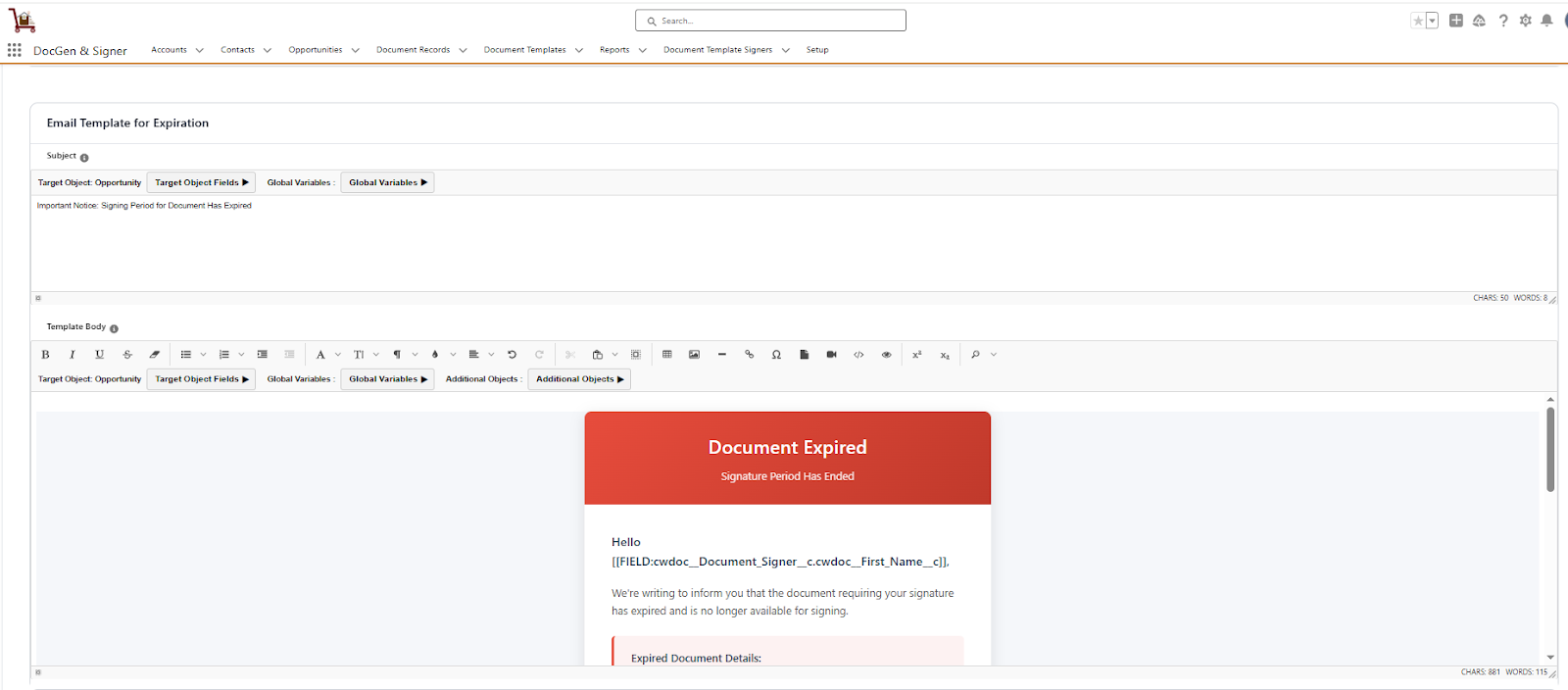 - Email Template for Expiration: This template is automatically sent when a document reaches its expiration date without being signed. It notifies all relevant parties that the document is no longer valid for signing.