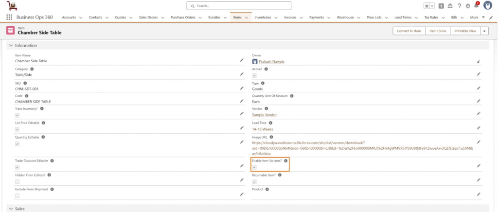Note :- Ensure ‘Enable Item Variants’ checkbox field is checked or not to create Item Variant
