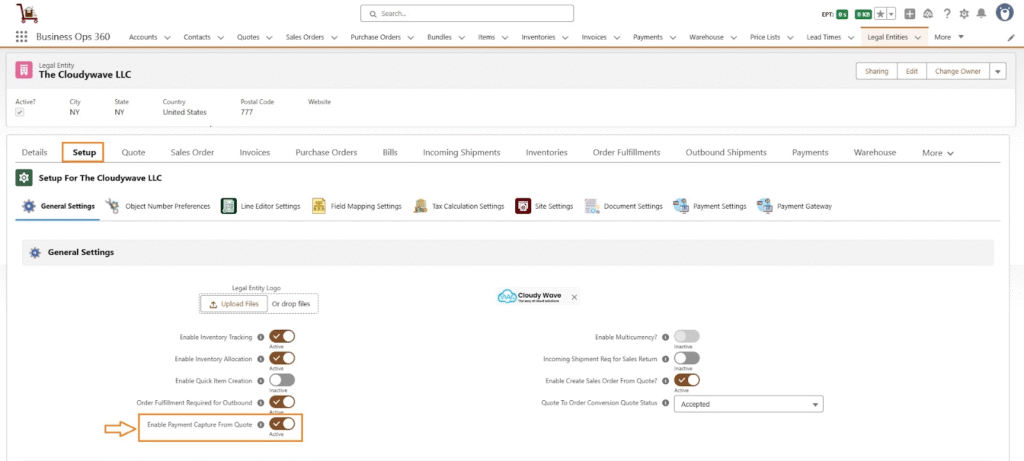 Note: To capture payments from a Quote, ensure that the ‘Enable Payment Capture From Quote’ checkbox is selected on Legal Entity (As shown below screenshot).