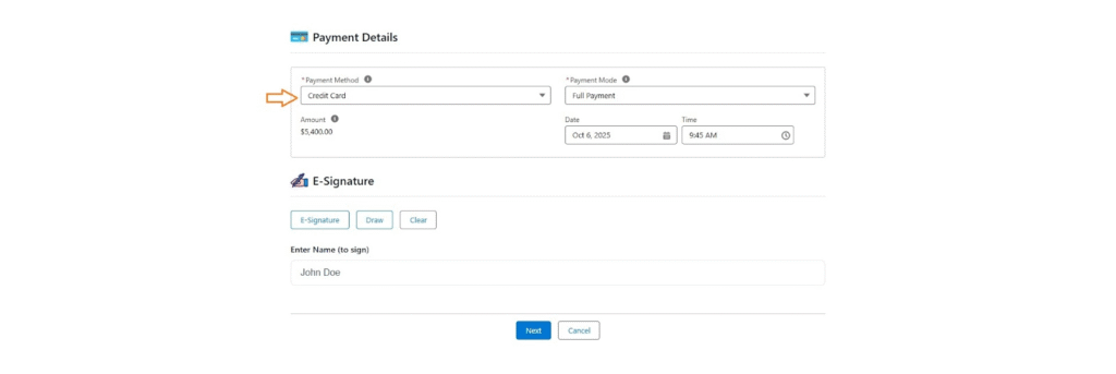 - Choose the payment mode (Full or Partial) and complete the payment process.