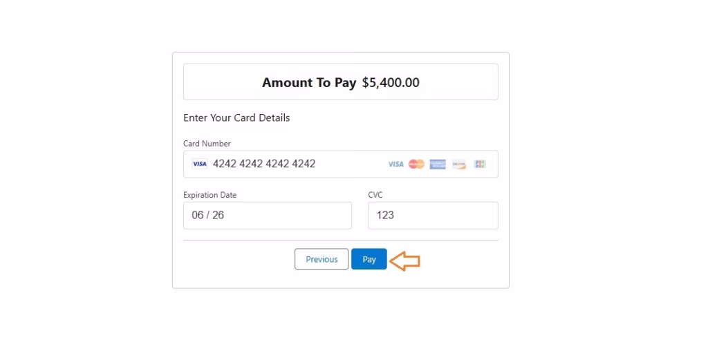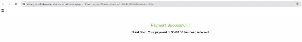 Click Pay. Once the payment is processed successfully, a confirmation message will be displayed.