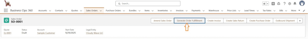 Select “Generate Order Fulfilment” Button on top right corner of the Sales Order as shown in screenshot.
