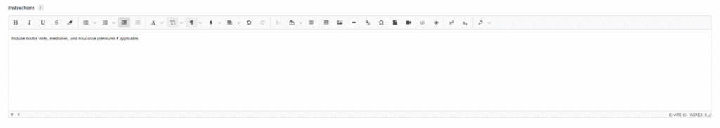 - Instruction: Include doctor visits, medicines, and insurance premiums if applicable.