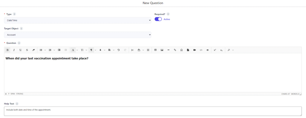 • Help Text: Include both date and time of the appointment.