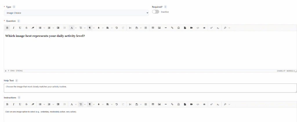 - Help Text: Choose the image that most closely matches your activity routine.