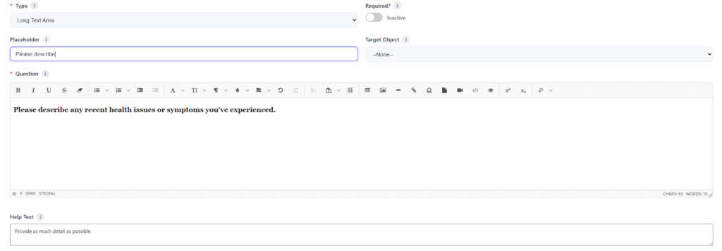 - Question: Please describe any recent health issues or symptoms you’ve experienced.