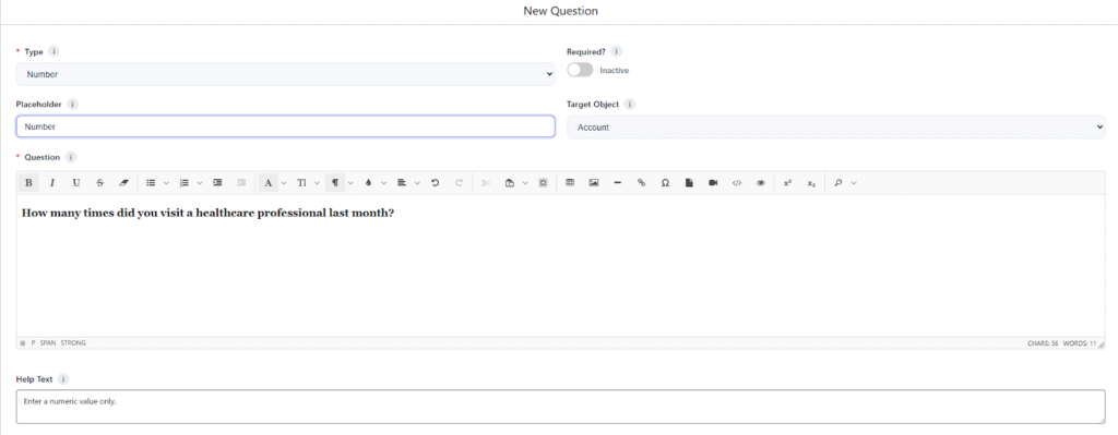 Used to capture visit counts, test frequencies, or numeric metrics.