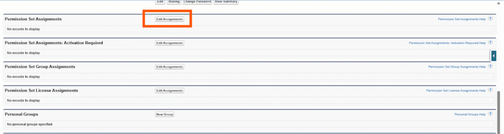 - On the user’s record page, scroll down to find the Permission Set Assignments related list.