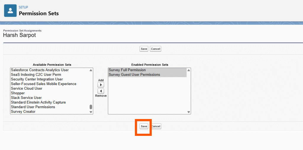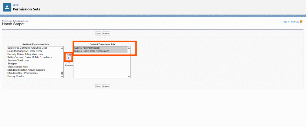 - Click the Add (→) arrow to move them to the Enabled Permission Sets column.