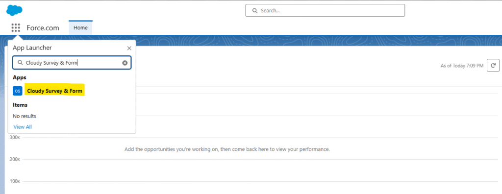 1. Search for the “Cloudy Survey & Form” in the app launchers search box.