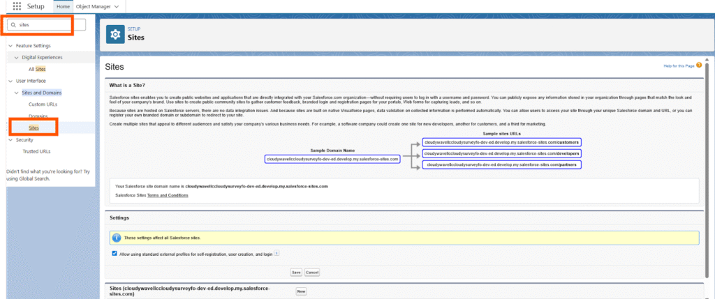 - Click on Sites under the “Sites and Domains” and section.