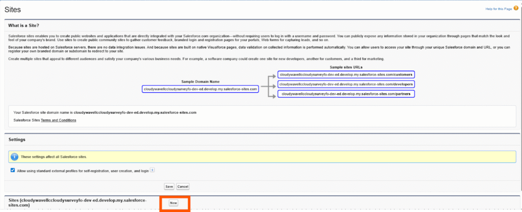 Step 3: Create New site