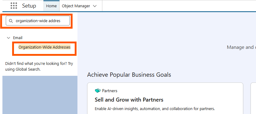 - In the Quick Find box on the left, organization-wide addresses type.