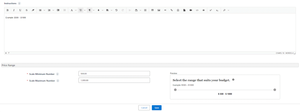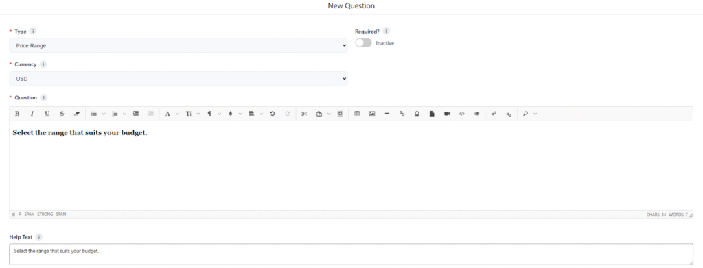 - Help Text: Select the range that suits your budget.