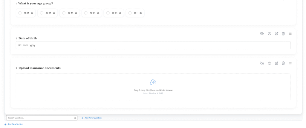 - Edit Question: Users can update the question text, type, help text, or validation rules after it has been added.