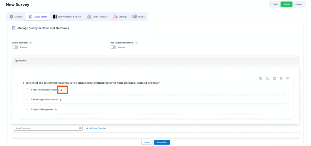 - Enable Sections: Allows users to group questions into logical sections, making long surveys easier to navigate and manage.
