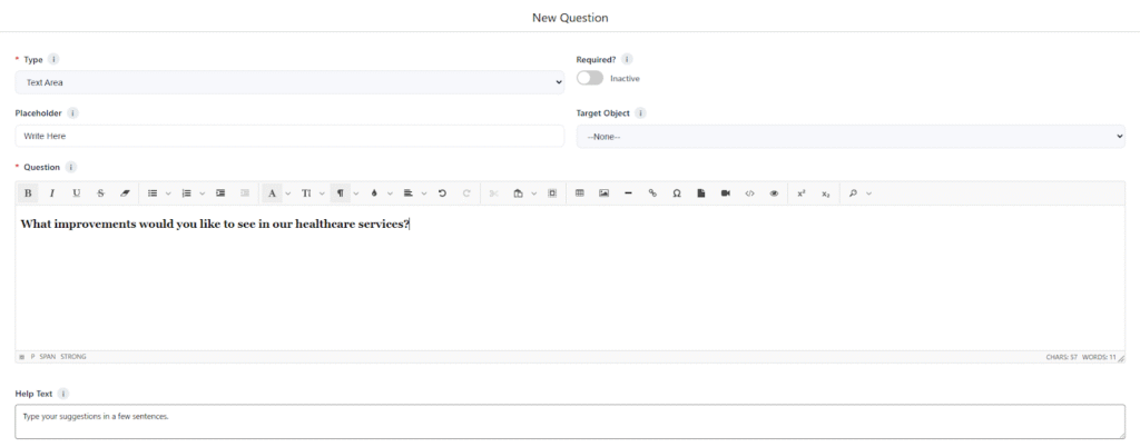 Best for comments, notes, feedback, or any input that requires more explanation but not extremely long text.